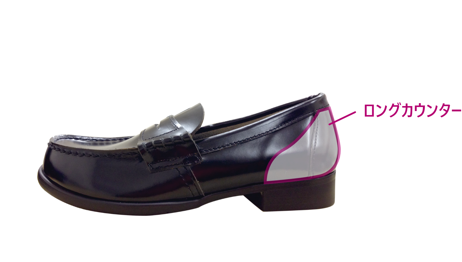 現代の子供の足は、環境や生活習慣の変化から踵は細く、甲が低いのが特徴です。従来のローファーの木型(※1)は、現代の子供の足には大きすぎ、脱げやすく、前すべりして足先があたってしまうという問題がありました。また、足指が窮屈な物も多く、痛みや足指の変形を助長してしまうため、木型の設計から見直しましした。踵は、脱げにくくするために踵を包み込む形状に、足先も中で指が動かせるよう広く設計されています。